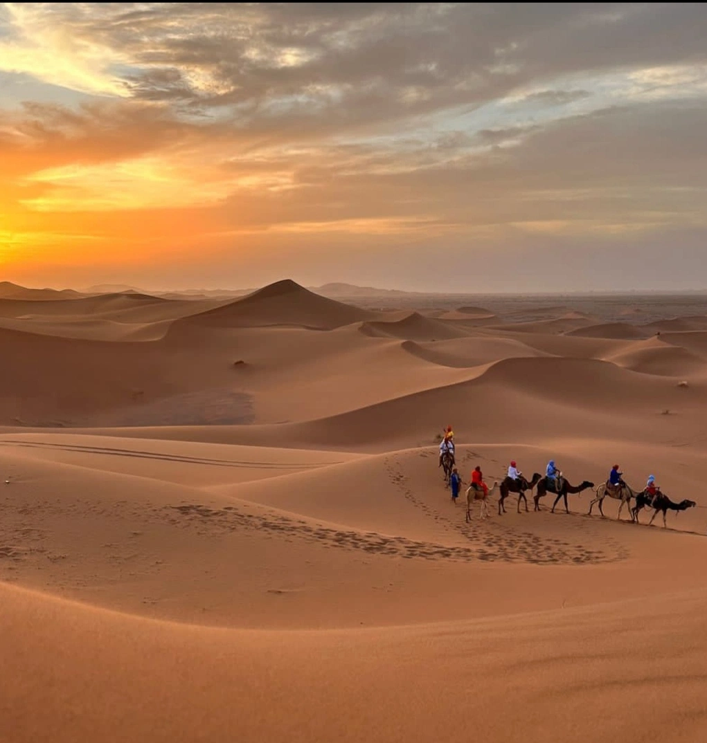 - 1 Night in a serene Desert Camp (Luxury or Standard) amidst the Merzouga dunes.