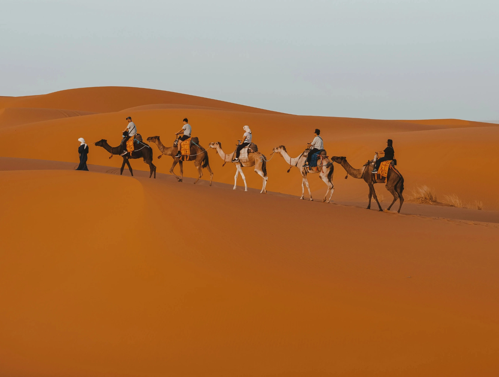 In the Sahara camel riding tour, it is best to take only essentials with you, such as water, phone, and camera. Your larger luggage will be transported by a private car to the camp before your arrival, ensuring easy movement and enjoyment of the trip without carrying many things.
