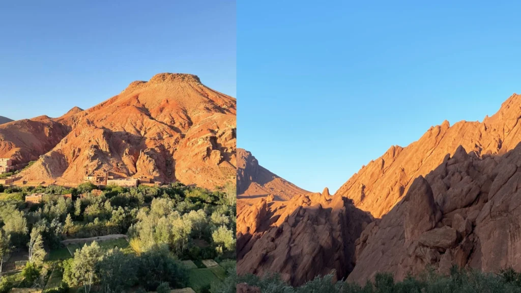 Enter the High Atlas Mountains, where towering peaks, sometimes dusted with snow, create stunning views. Berber villages dot the slopes, making it the perfect spot to stop and take panoramic photos.